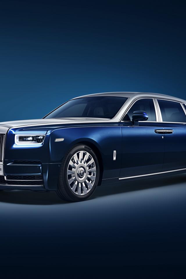 Wallpaper Blue car Rolls-Royce Phantom EWB 2018