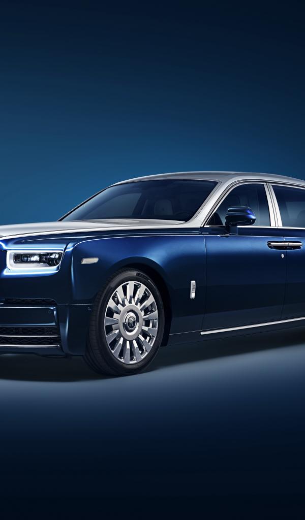 Wallpaper Blue car Rolls-Royce Phantom EWB 2018