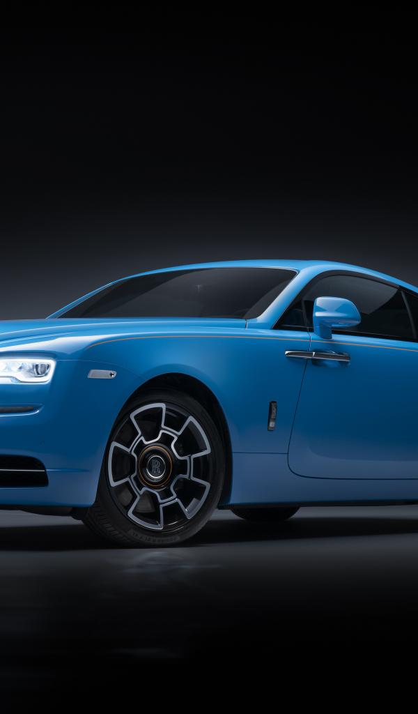Wallpaper Blue car Rolls-Royce Wraith, 2019 on a gray background