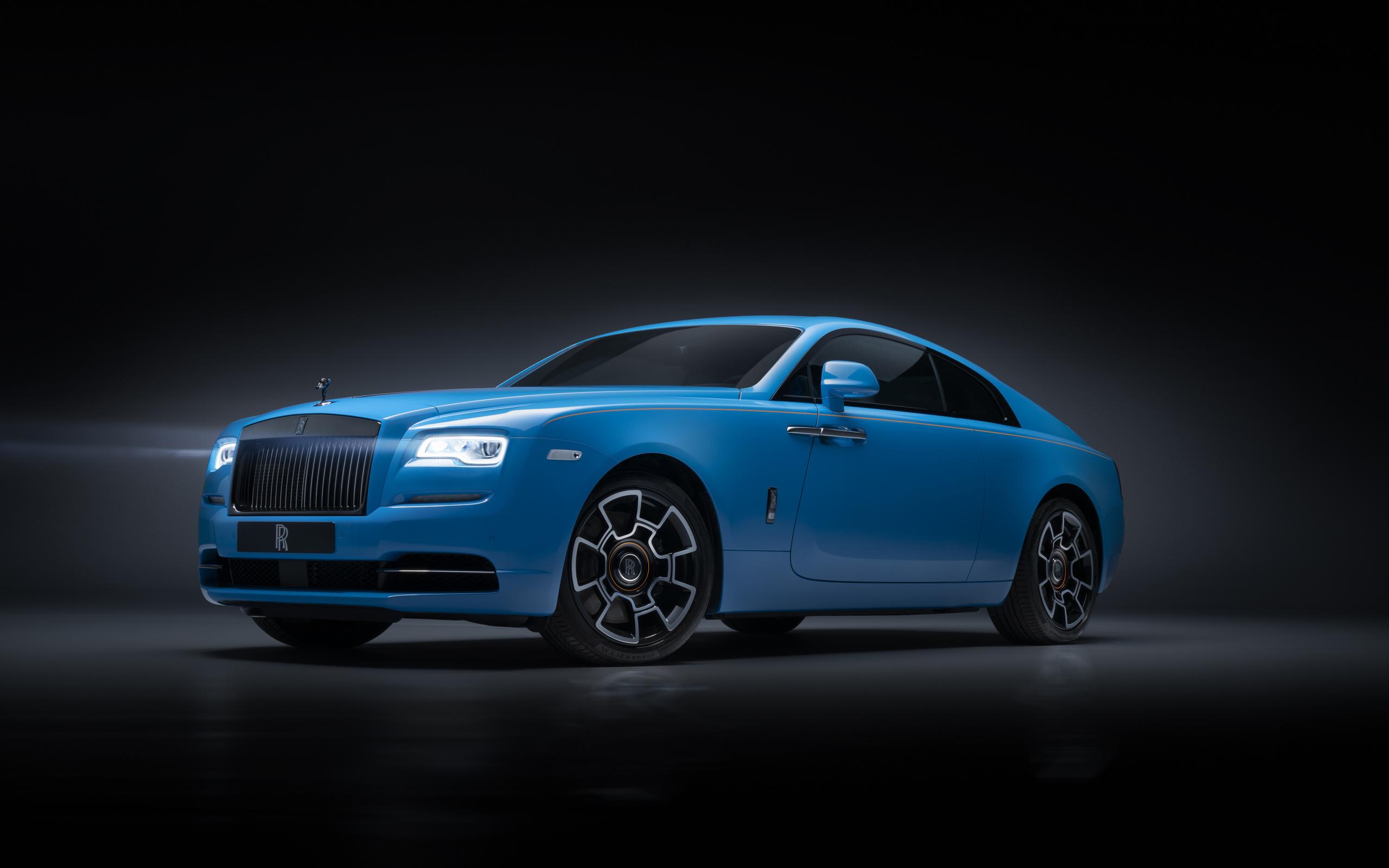 Wallpaper Blue car Rolls-Royce Wraith, 2019 on a gray background