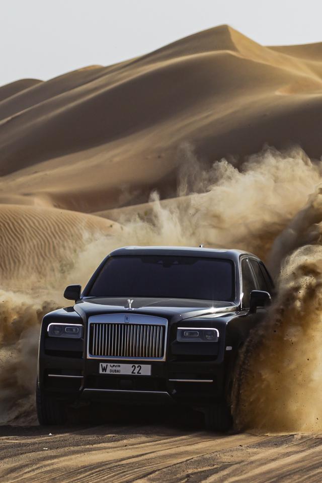 Wallpaper Black Rolls-Royce Cullinan car in the desert