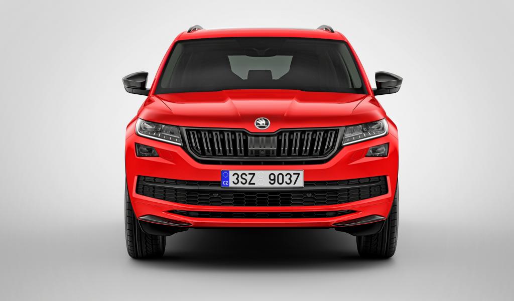 Wallpaper Red car Skoda Kodiaq on a gray background