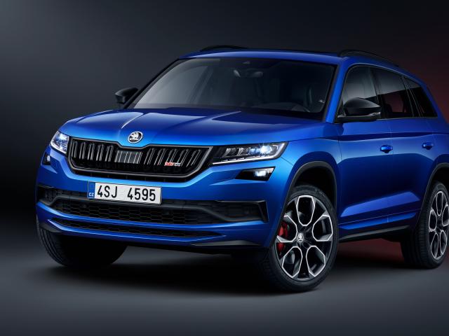 Wallpaper Blue 2018 SUV Skoda Kodiaq RS on a gray background