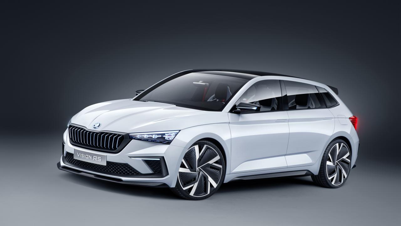 Wallpaper White car Skoda Vision RS 2018 on a gray background
