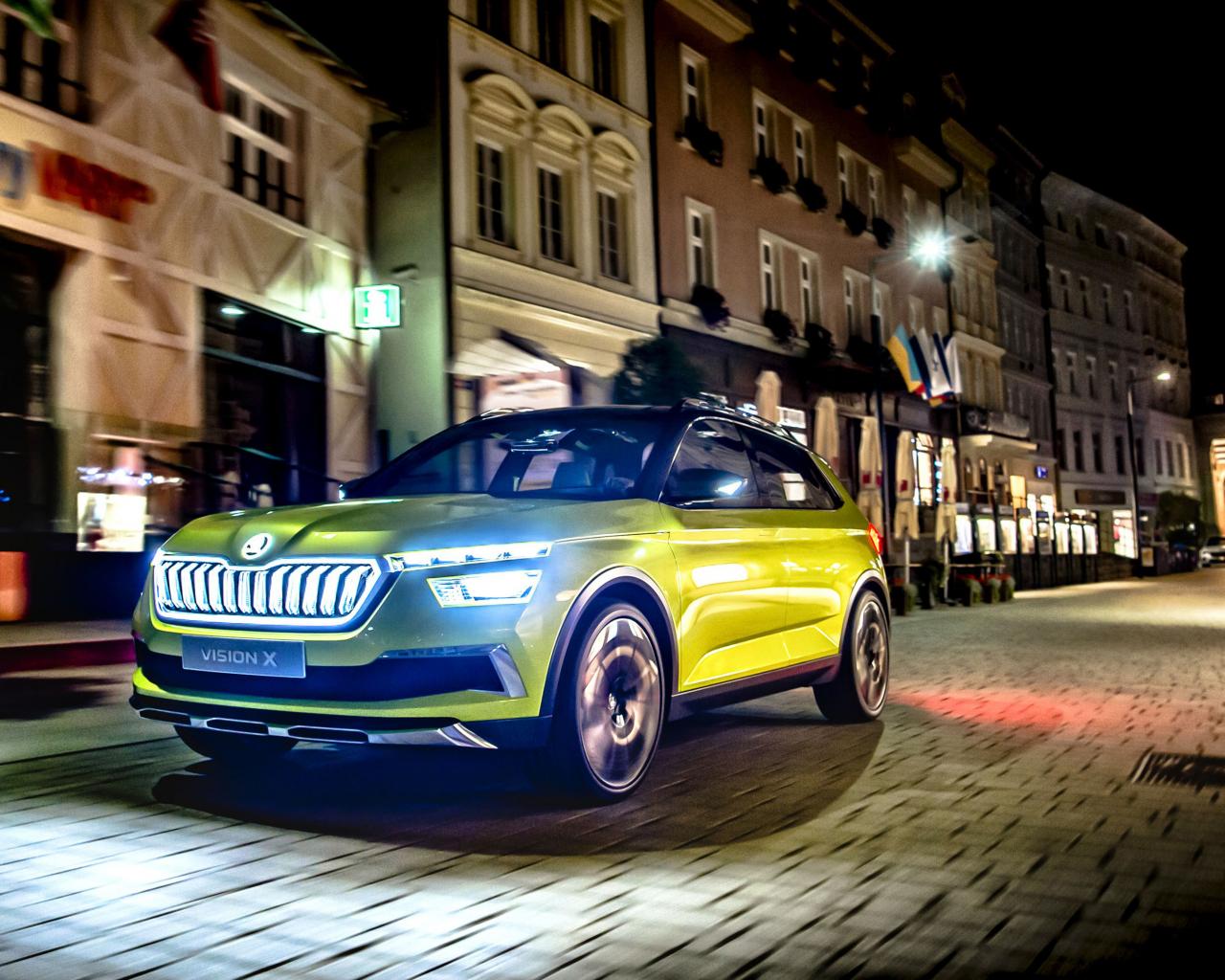 Wallpaper 2019 Skoda Vision X SUV on the city street