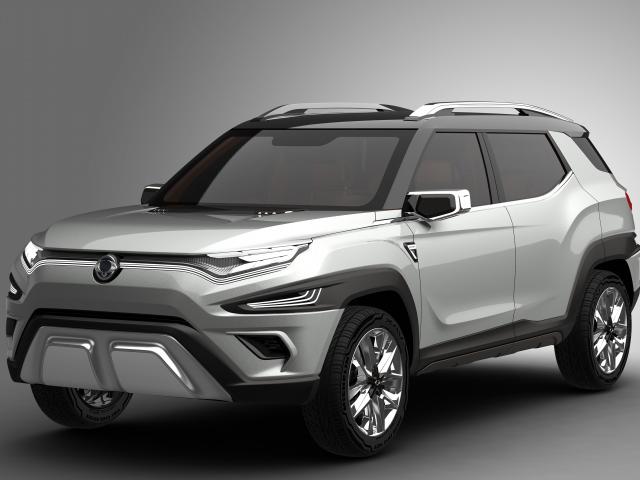 Wallpaper Silver SUV SsangYong XAVL, 2017 on a gray background