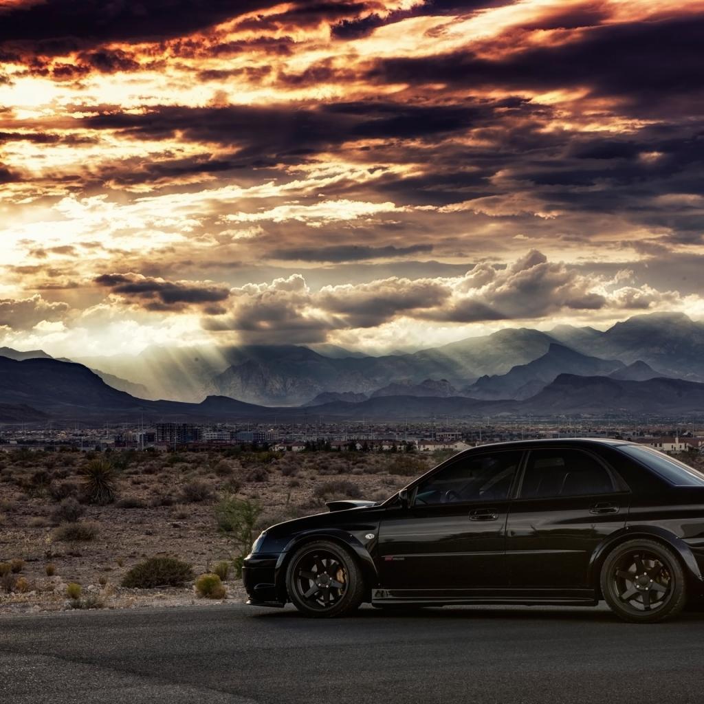 Wallpaper Black Subaru WRX ST against a plain background