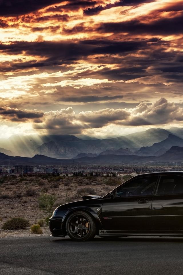 Wallpaper Black Subaru WRX ST against a plain background