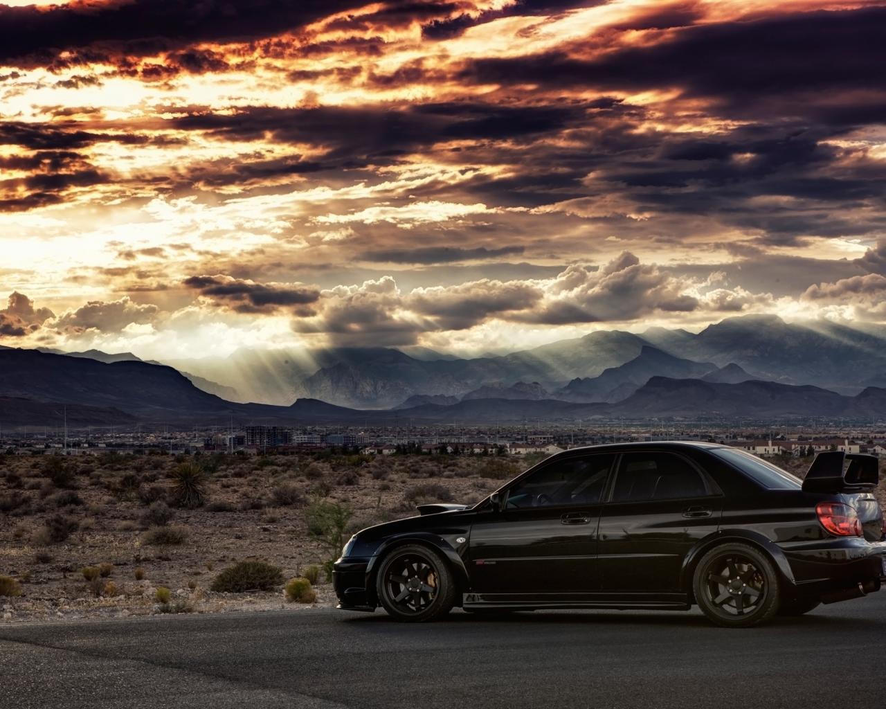 Wallpaper Black Subaru WRX ST against a plain background