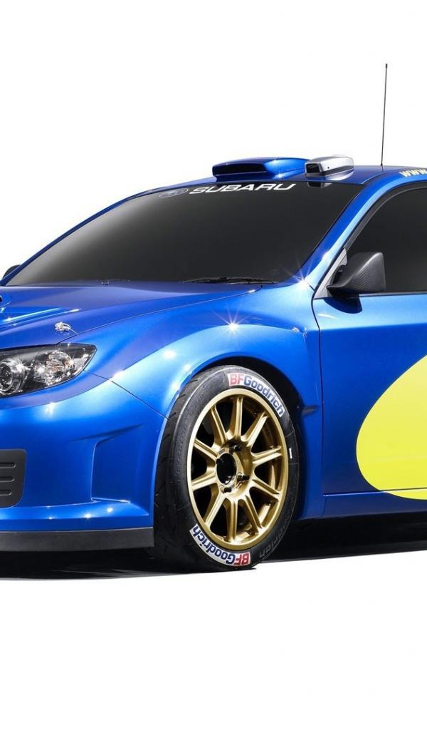 Wallpaper Blue Subaru Impreza with the symbols on the door