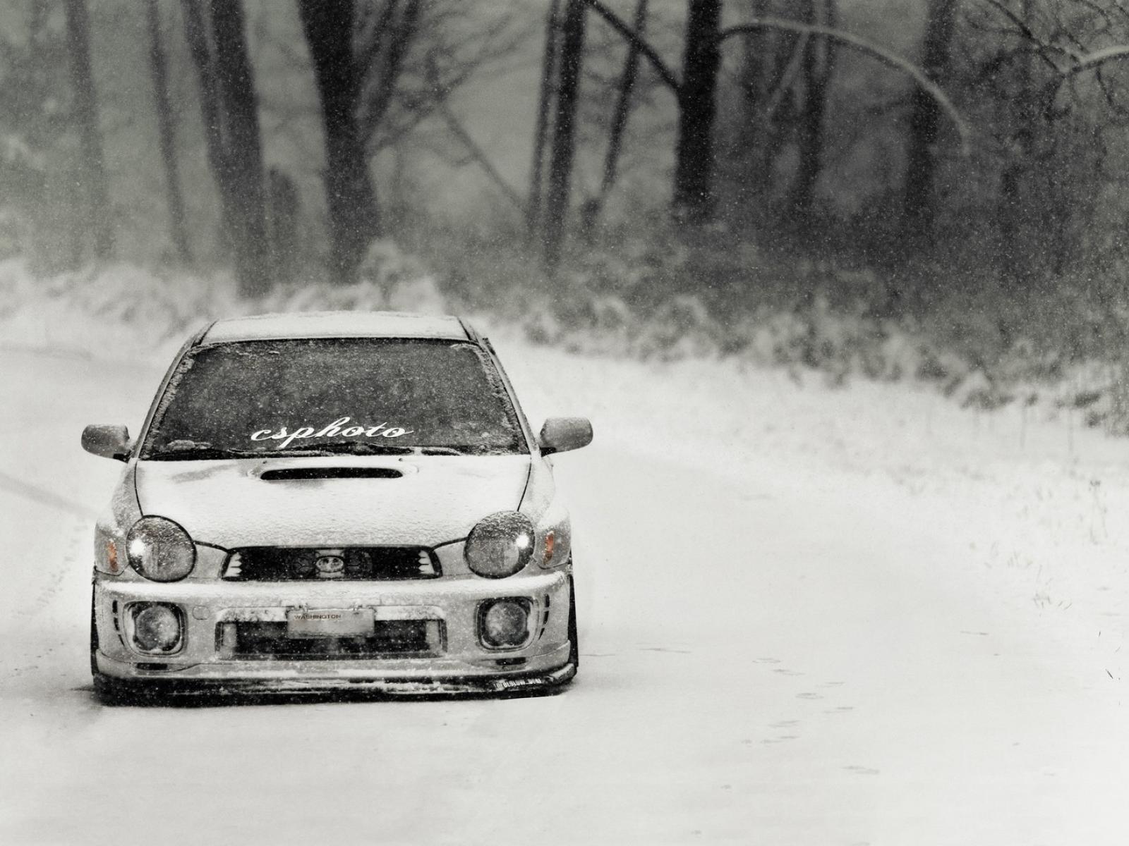 Wallpaper Subaru Impreza covered with snow on winter road