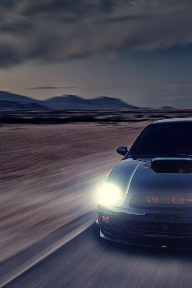 Wallpaper Rear view on the black Subaru Impreza WRX STi