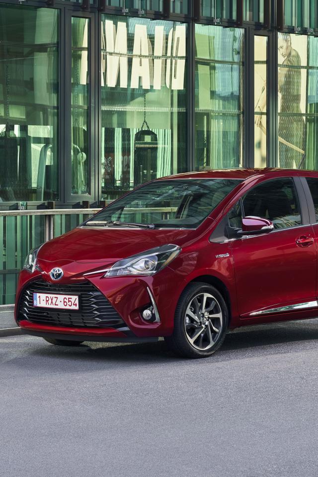 Wallpaper Red car Toyota Yaris Hybrid, 2017