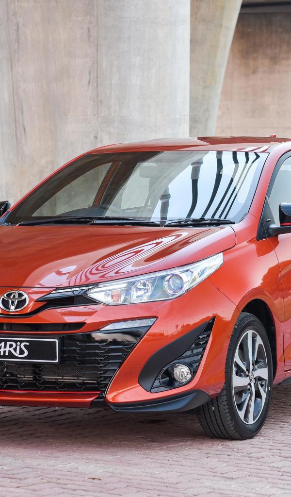 Wallpaper Red car Toyota Yaris under the bridge