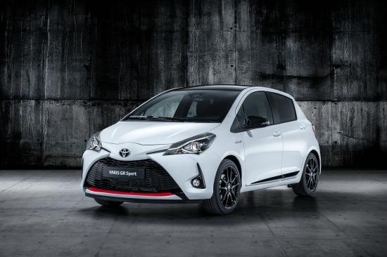 Wallpaper White car Toyota Yaris on a gray background