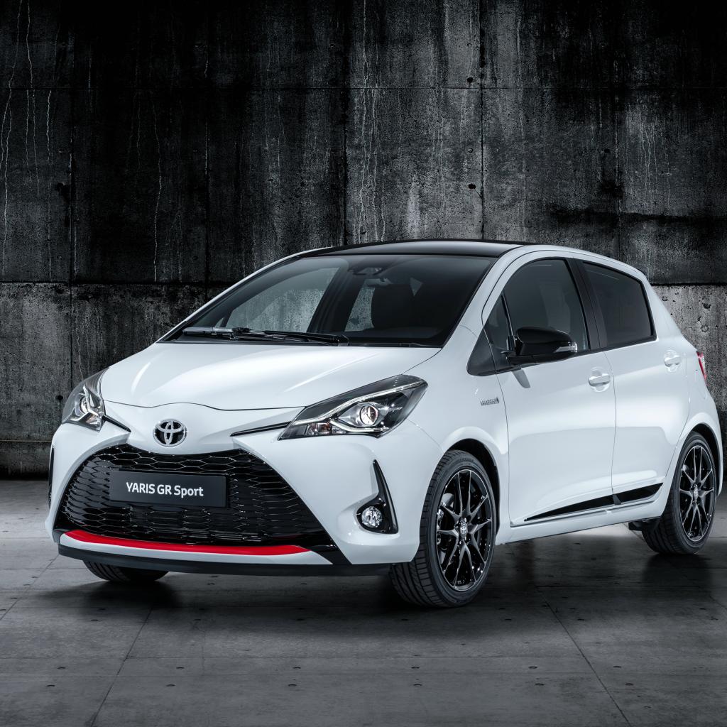 Wallpaper White car Toyota Yaris on a gray background