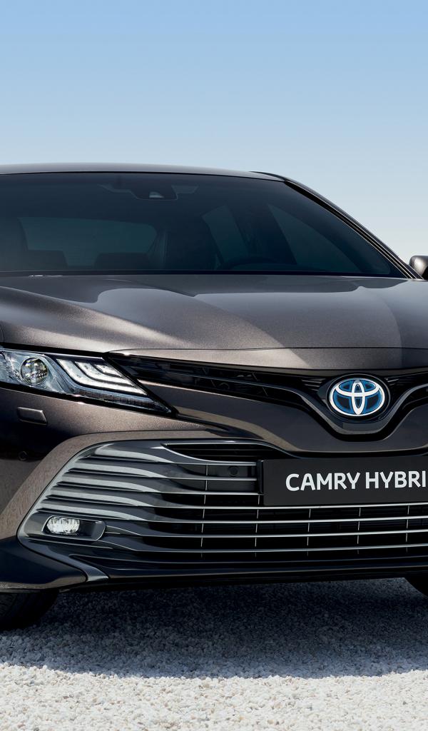 Wallpaper 2019 Toyota Camry Hybrid car standing on the sand