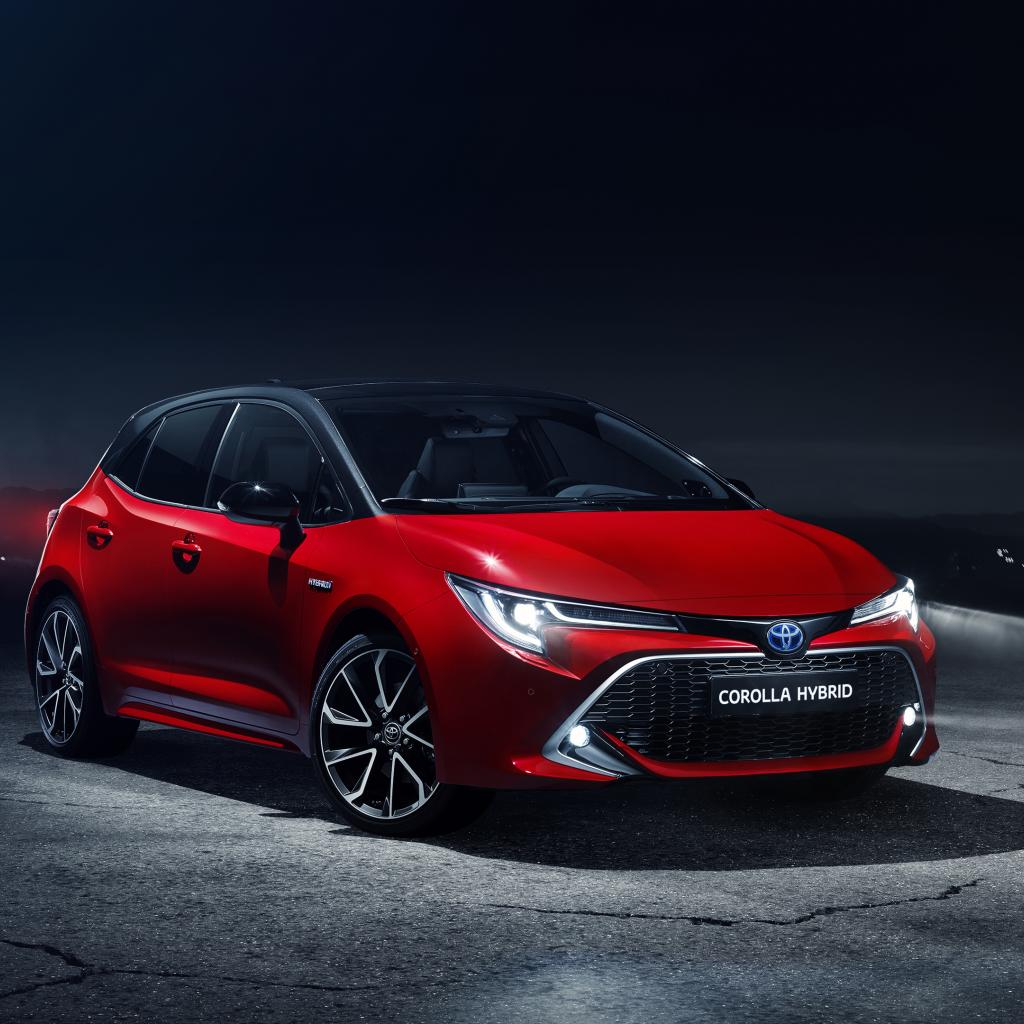 Wallpaper Red 2018 Toyota Corolla Hybrid in the light of lanterns