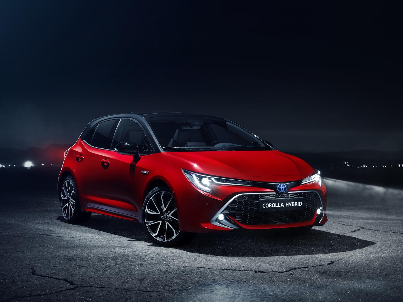 Wallpaper Red 2018 Toyota Corolla Hybrid in the light of lanterns