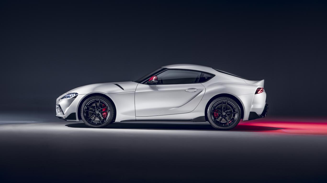 Wallpaper Gray car Toyota GR Supra 2L 2020 side view on a gray background