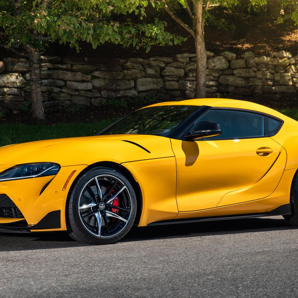 Wallpaper Yellow Toyota GR Supra car, 2021 near the wall