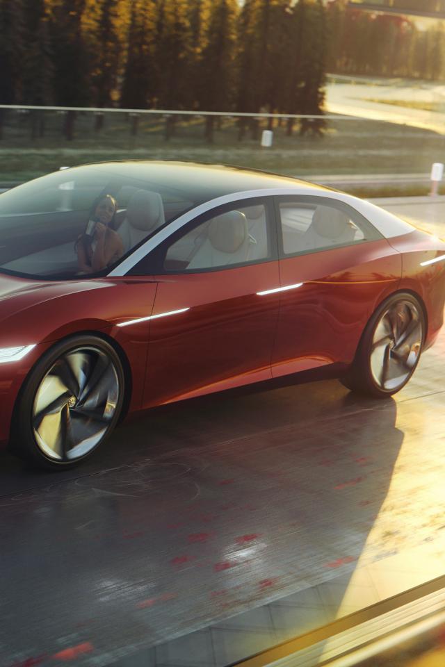 Wallpaper Red car Volkswagen Id Vizzion