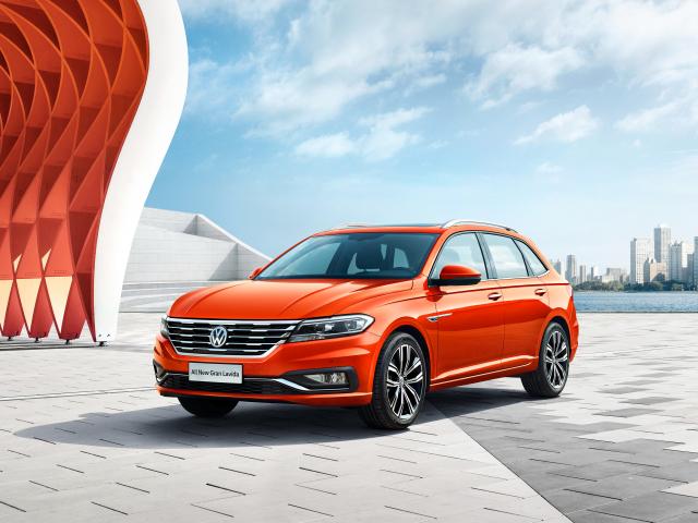 Wallpaper Red car Volkswagen Gran Lavida, 2018