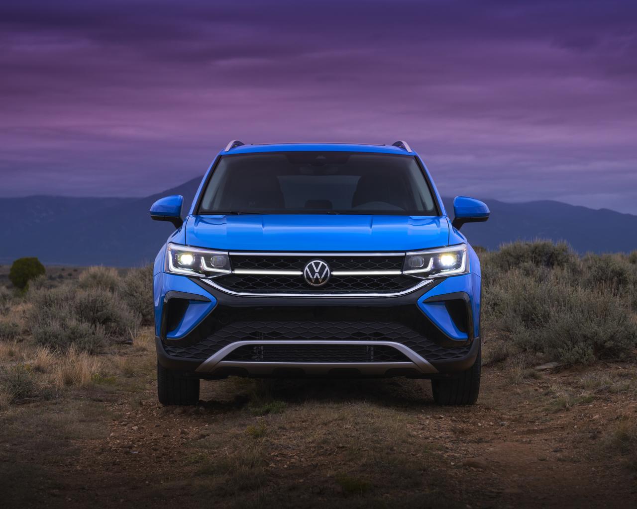 Wallpaper Blue Volkswagen Taos car, 2021 front view