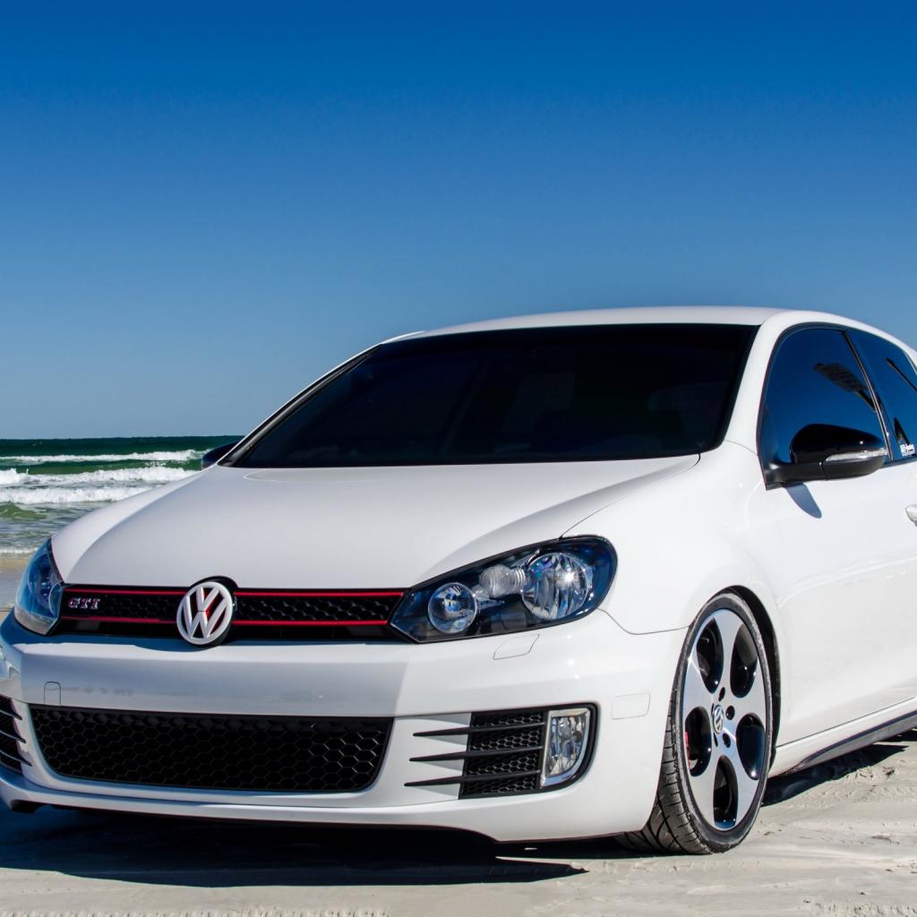 Wallpaper White Volkswagen Golf Mk6 GTI on the beach