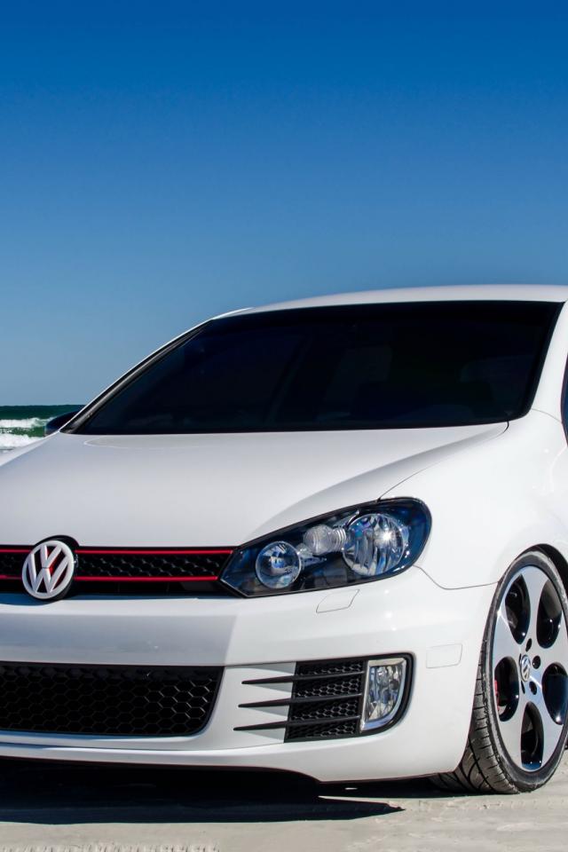 Wallpaper White Volkswagen Golf Mk6 GTI on the beach