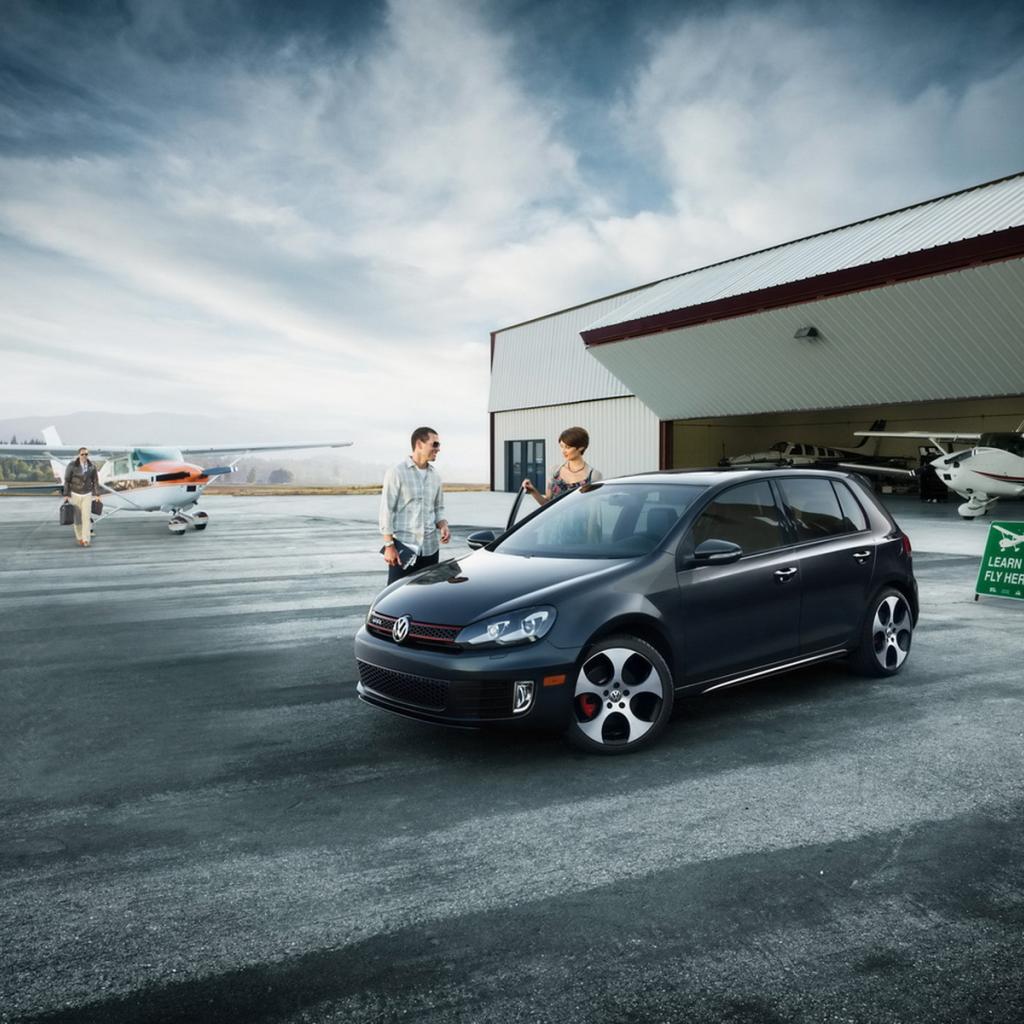 Wallpaper Volkswagen Golf GTI in airdrome