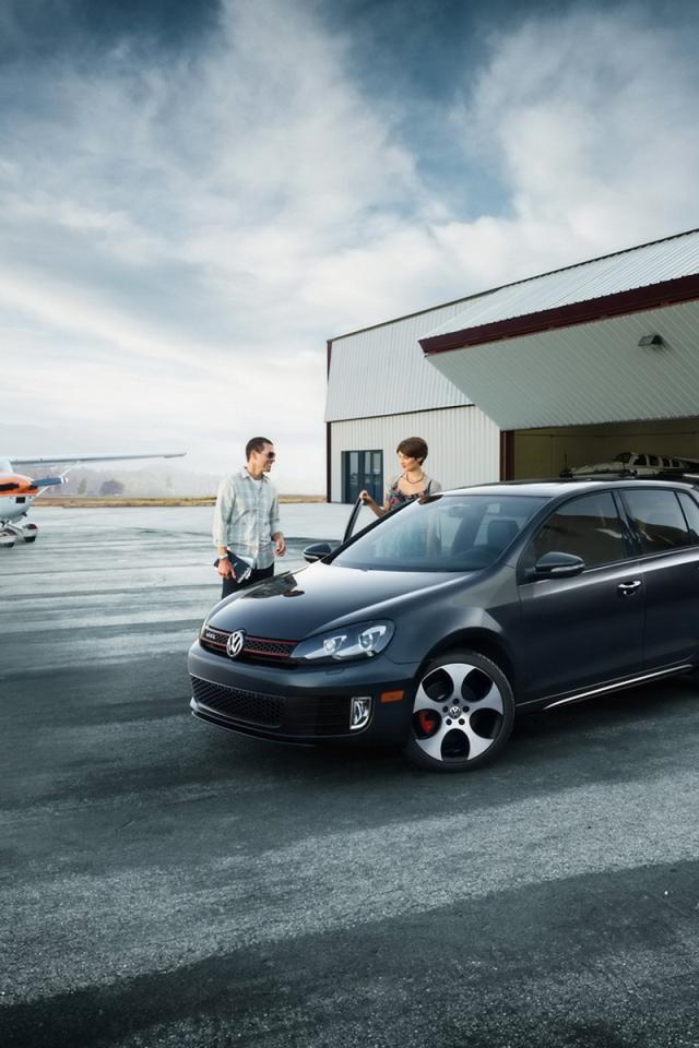 Wallpaper Volkswagen Golf GTI in airdrome
