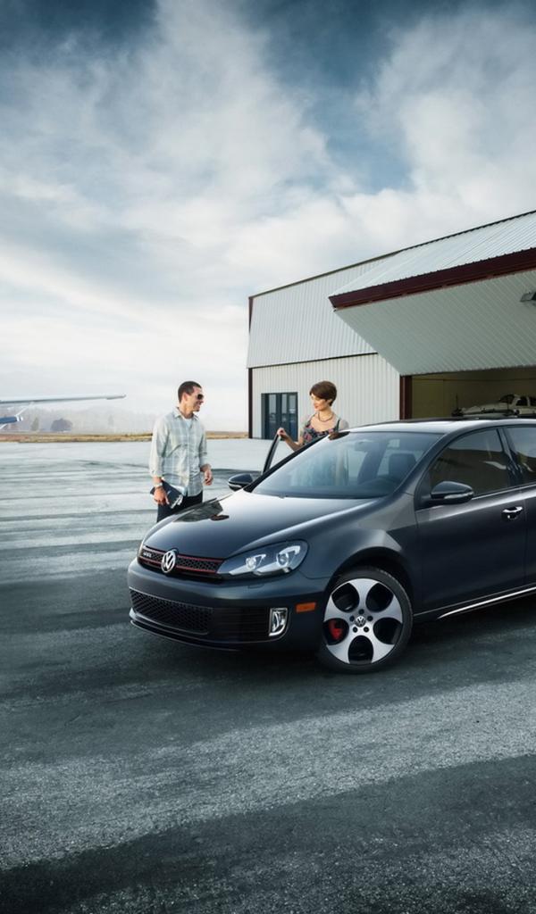 Wallpaper Volkswagen Golf GTI in airdrome