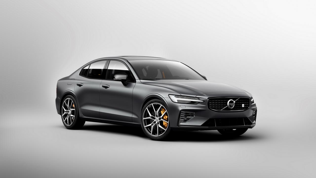 Wallpaper Silver car Volvo S60, 2018 year on a gray background