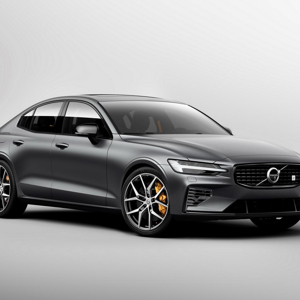 Wallpaper Silver car Volvo S60, 2018 year on a gray background
