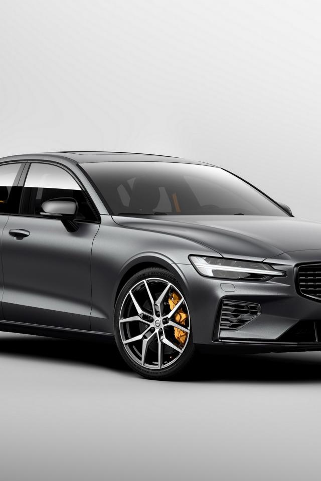 Wallpaper Silver car Volvo S60, 2018 year on a gray background