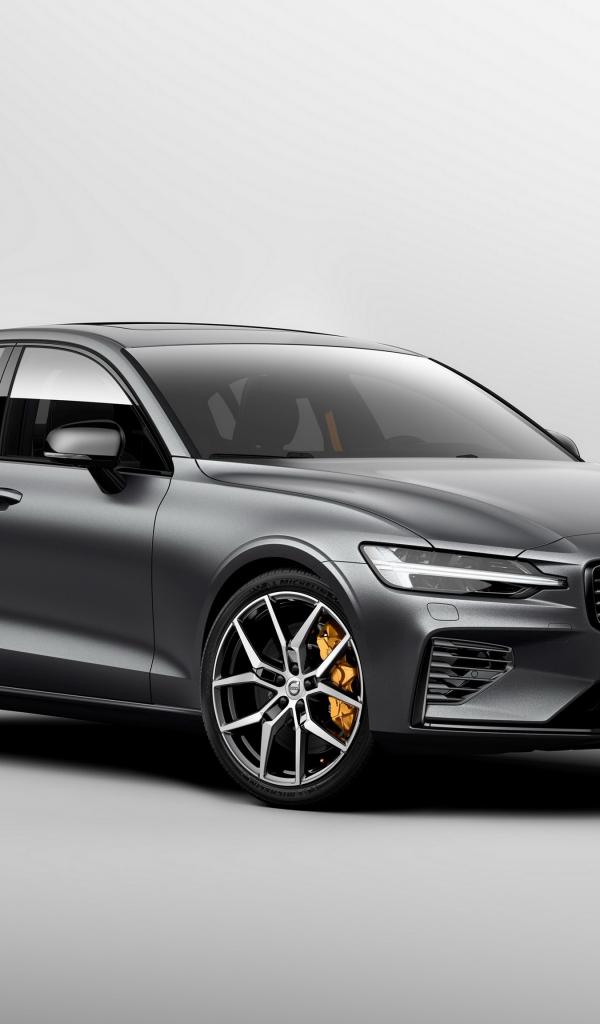 Wallpaper Silver car Volvo S60, 2018 year on a gray background