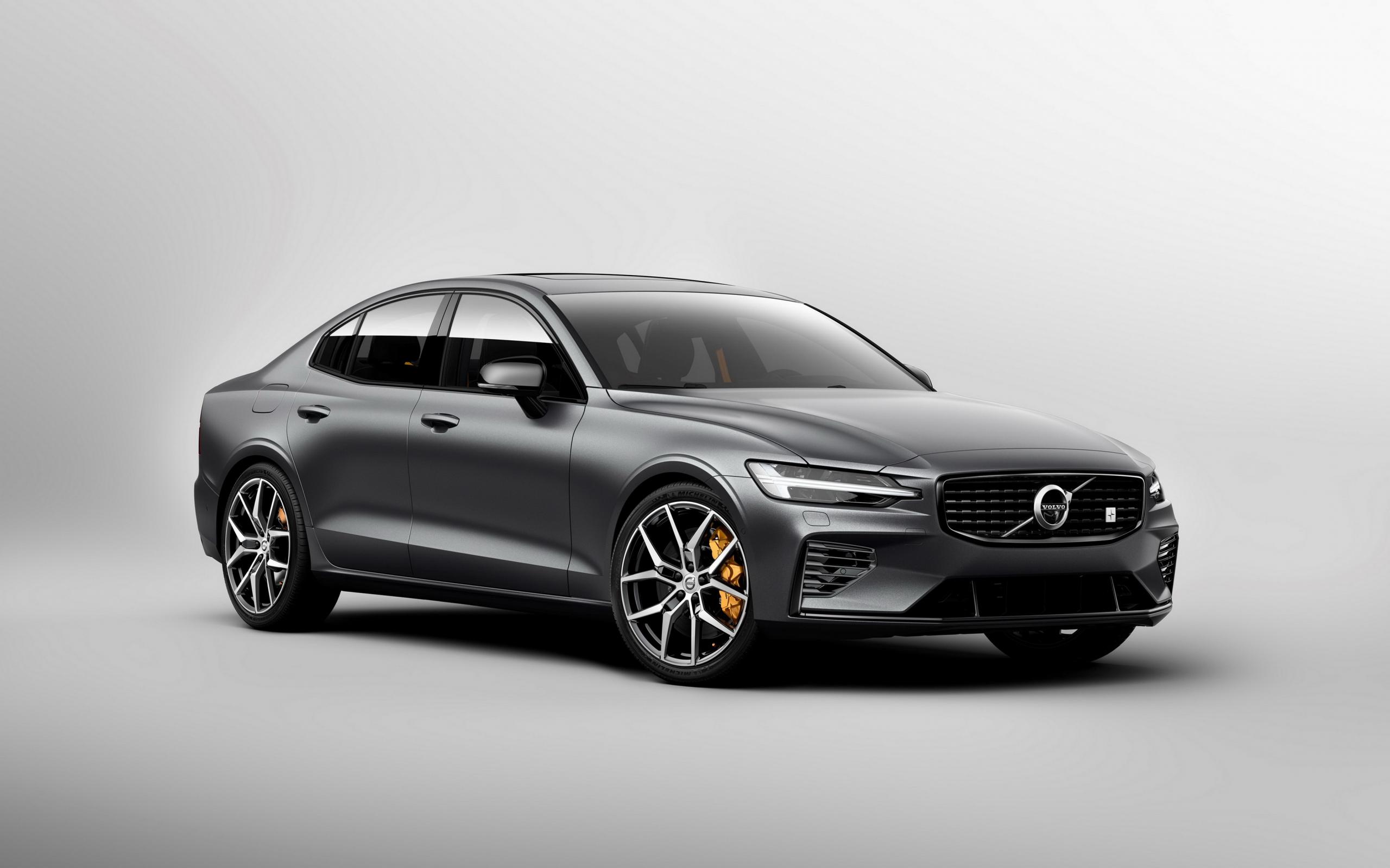 Wallpaper Silver car Volvo S60, 2018 year on a gray background