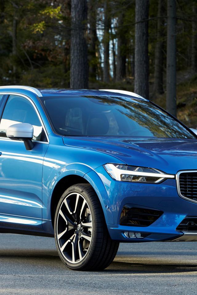 Wallpaper Blue car Volvo V60 on the background of the forest