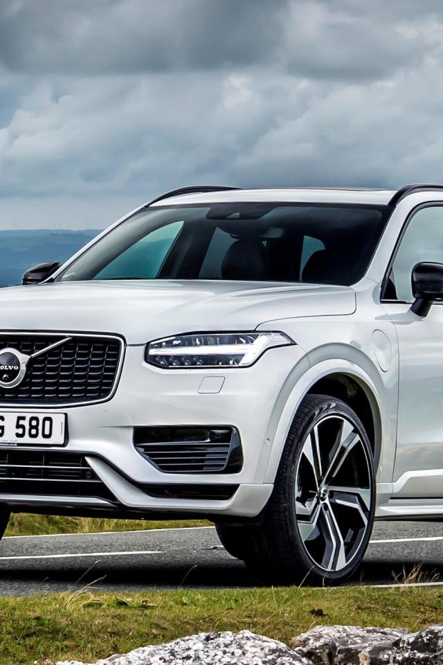 Wallpaper 2019 white Volvo XC90 T8 Twin Engine R-Design on the road