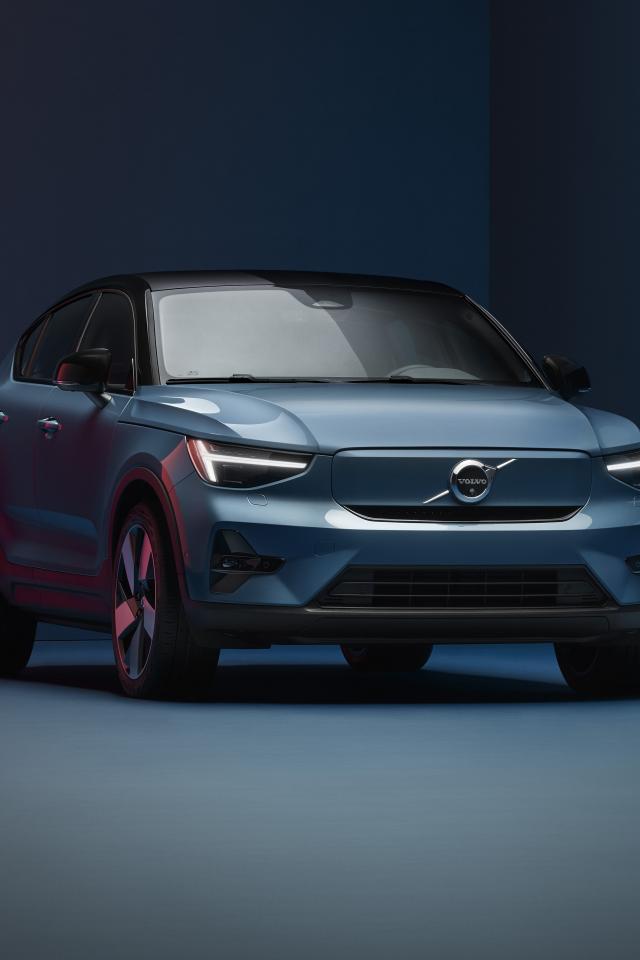 Wallpaper 2021 Volvo C40 Recharge car against blue background