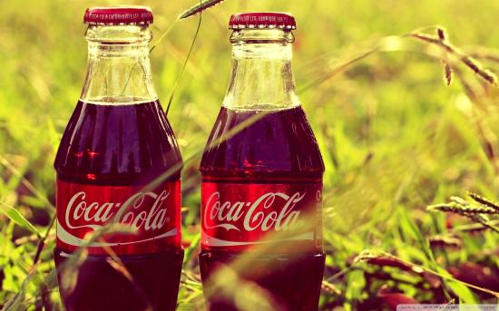 Wallpaper Two bottles of Coca-Cola in the grass