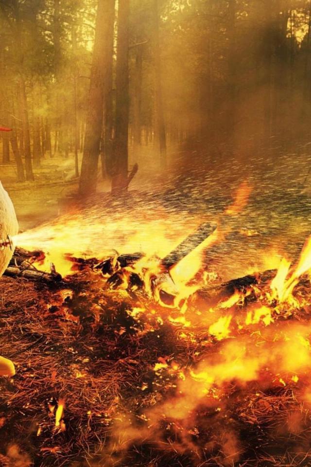 Wallpaper Snowman extinguishing fire