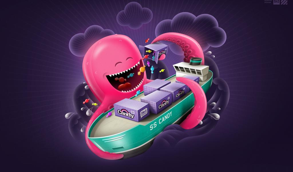 Wallpaper Octopus with candies