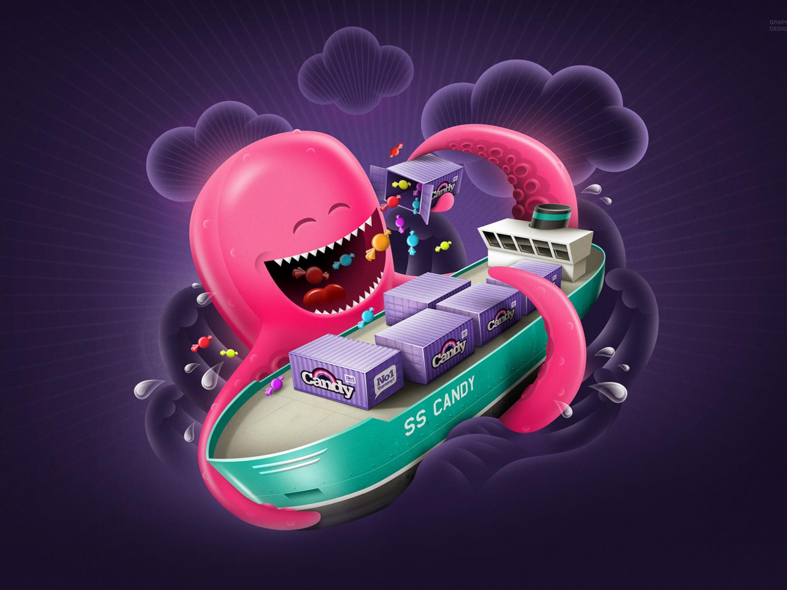 Wallpaper Octopus with candies