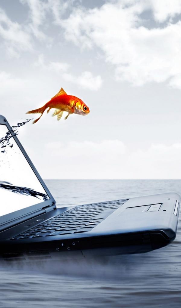 Wallpaper Fish with a laptop screen HP