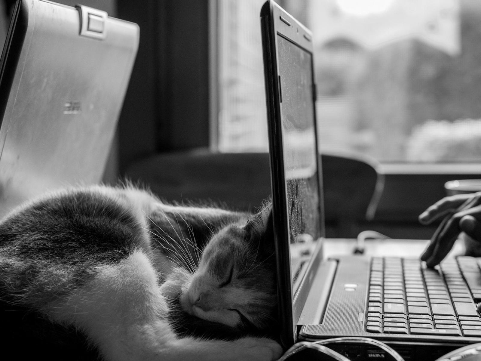 Wallpaper Cat sleeps in HP Notebook