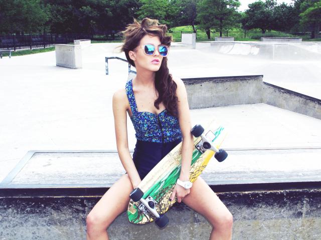Wallpaper Beautiful girl with a skateboard, swag