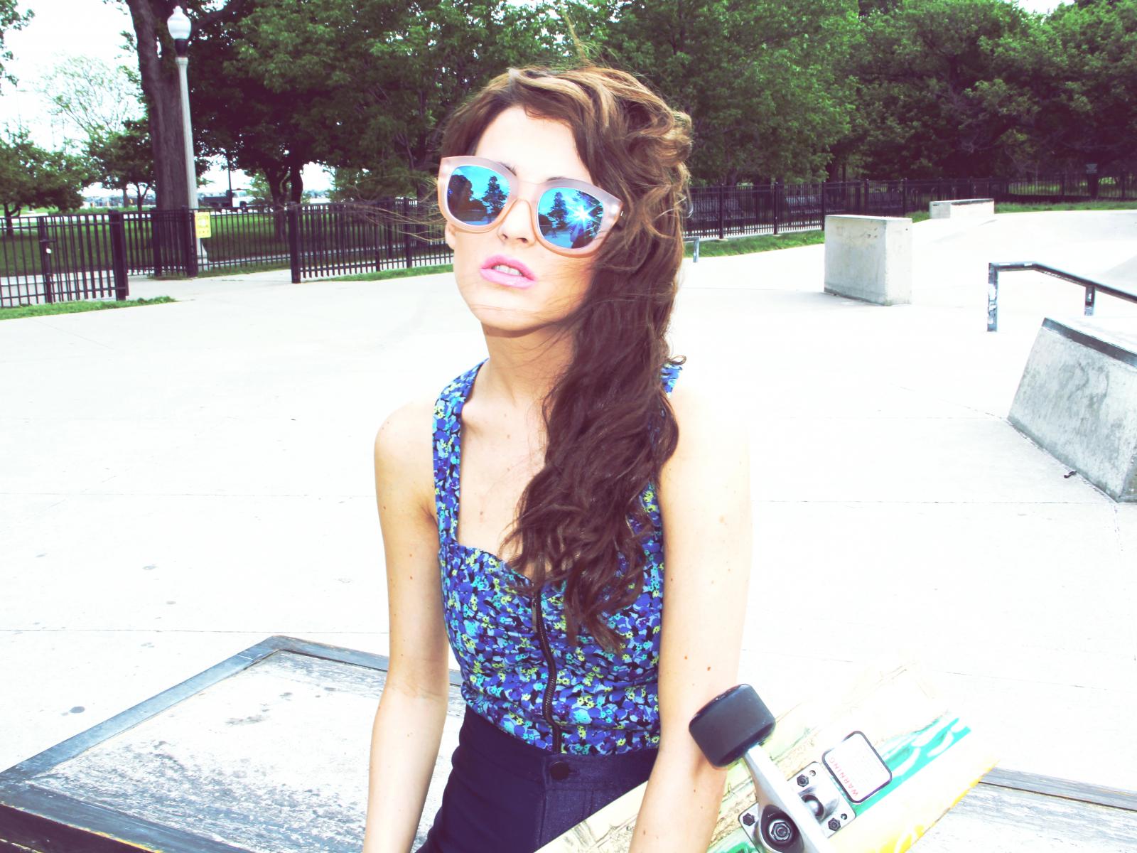 Wallpaper A girl with glasses and a skateboard, swag
