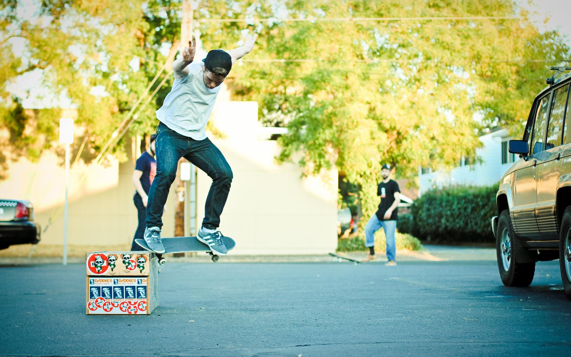 Wallpaper Skater performs a trick